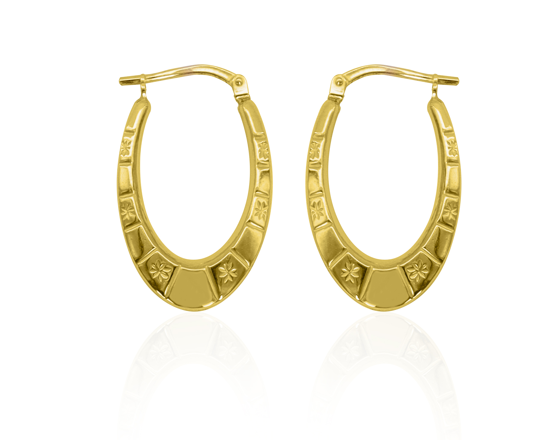 AG925 YELLOW OVAL FLOWER TEXTURE EARRINGS 15x21mm