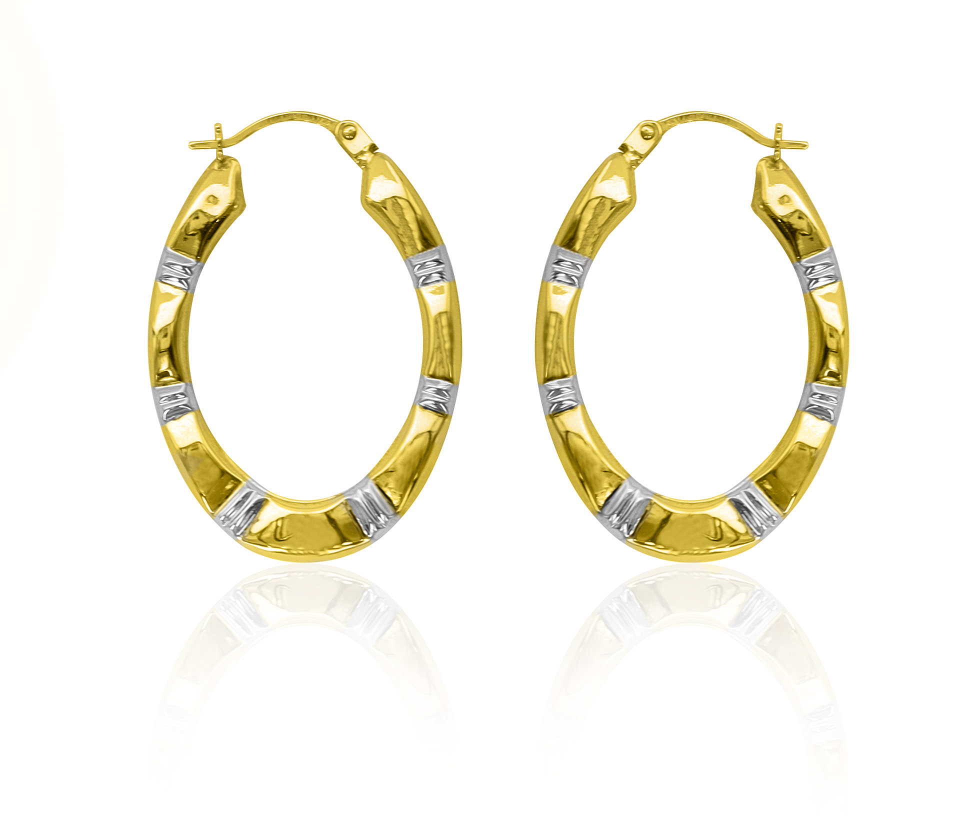 14KT 2TONE OVAL HOOP EARRINGS 19x30mm