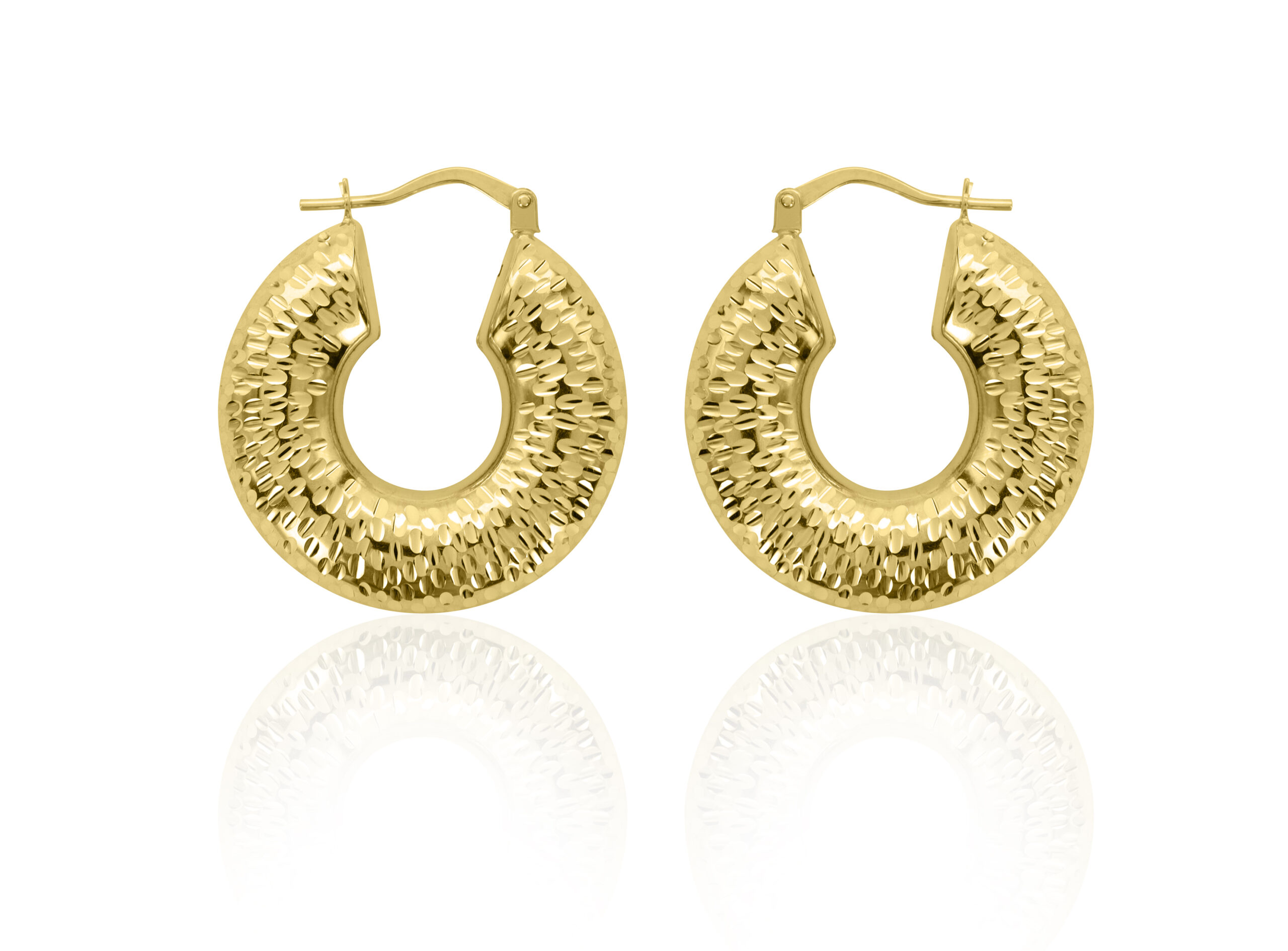 9KT YELLOW DIAMOND CUT HOOP EARRINGS 25MM